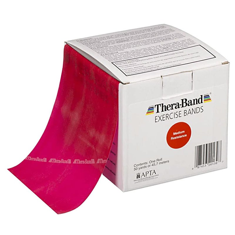 高品質トレーニングバンド リハビリ・ダイエット目的に最適な強度です THERABAND セラバンド 徳用サイズ 合計45.7m(50ヤード) 赤 レッド(ミディアム)