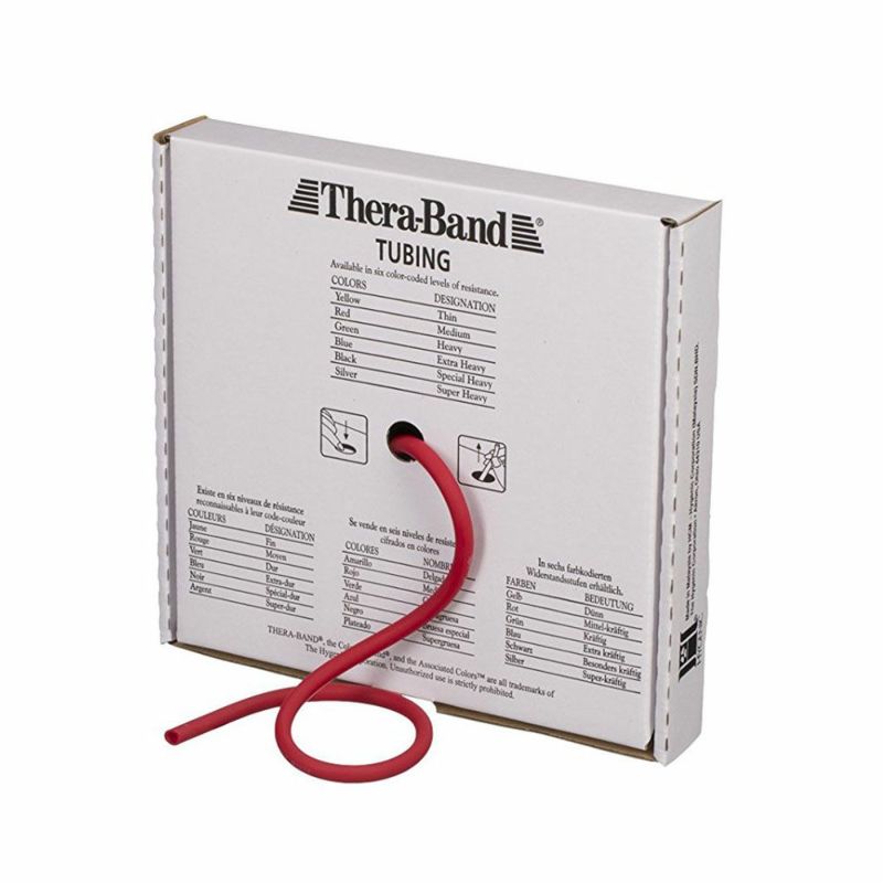 高品質トレーニングチューブ リハビリやダイエットに最適な強度です THERABAND セラバンド セラチューブ 徳用サイズ 合計30.48m(100フィート)巻 赤 レッド(ミディアム)