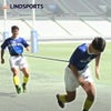 2人がベルトを巻き、帯ひもでつなぎます。後方の選手が踏ん張ることで、前方の選手の負荷走 トレーニングになります。