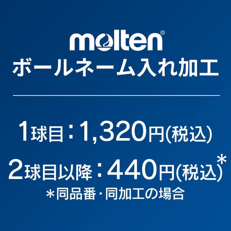 • Molten製ボールの団体名ネーム入れを1球目1200円+税、2球目以降は同品番・同加工であれば1球当たり400円+税、メーカー直送対応にて承っています。