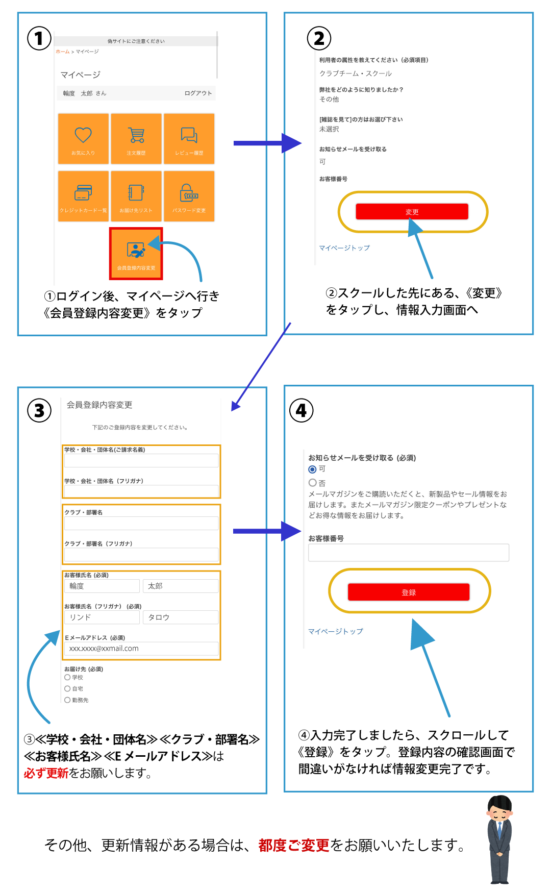情報が更新されていないと、商品のお届けや必要書類の発行ができない場合がございます。