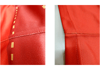 縫製工程時、生地を伸ばして縫い合わせる為、色が浸透していない部分がでてくる場合がございます。