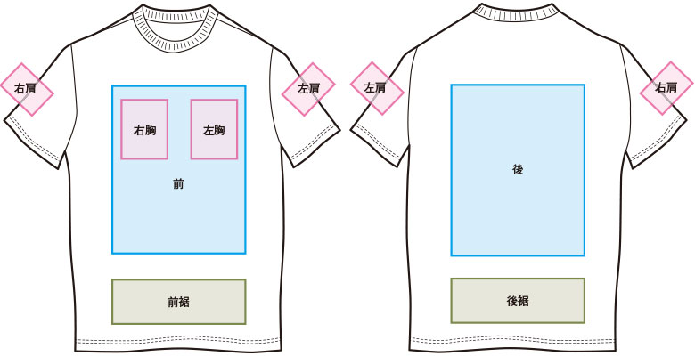 印刷可能な場所は、前・後・袖です。
