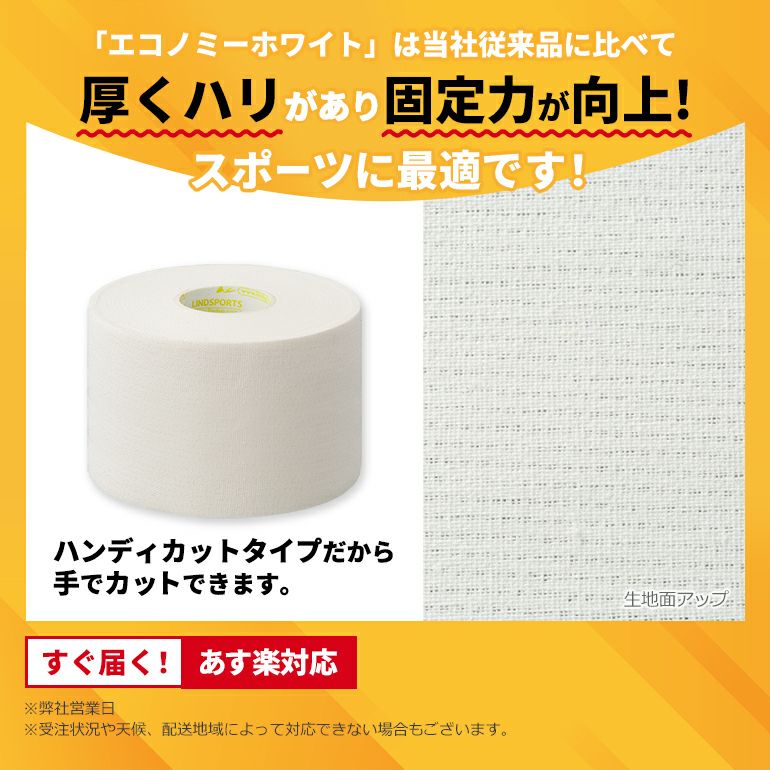 他の画像を見る 基本の固定用 非伸縮テーピングテープ LINDSPORTS エコノミーホワイト 幅50mm 24本入 固定用 非伸縮 テーピングテープ ケース販売 販売価格 ¥ 5,755 税込 カートに入れる (0)