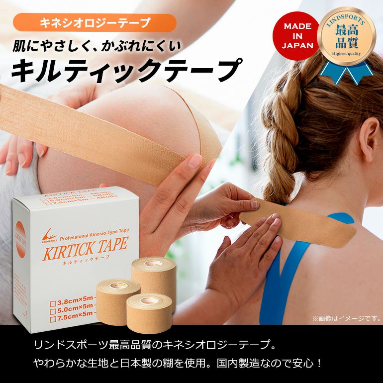 他の画像を見る 肌にやさしく、かぶれにくい日本製のキネシオロジーテープ LINDSPORTS キルティックテープ 幅75mm×5m 4本入/箱 ケース販売 販売価格 ¥ 2,398 税込 カートに入れる (0)