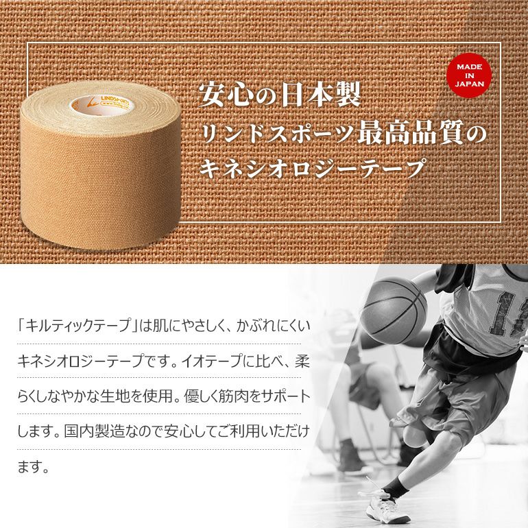 他の画像を見る 肌にやさしく、かぶれにくい日本製のキネシオロジーテープ LINDSPORTS キルティックテープ 幅50mm×5m 6本入/箱 ケース販売 販売価格 ¥ 2,398 税込 カートに入れる 5.00 (2)