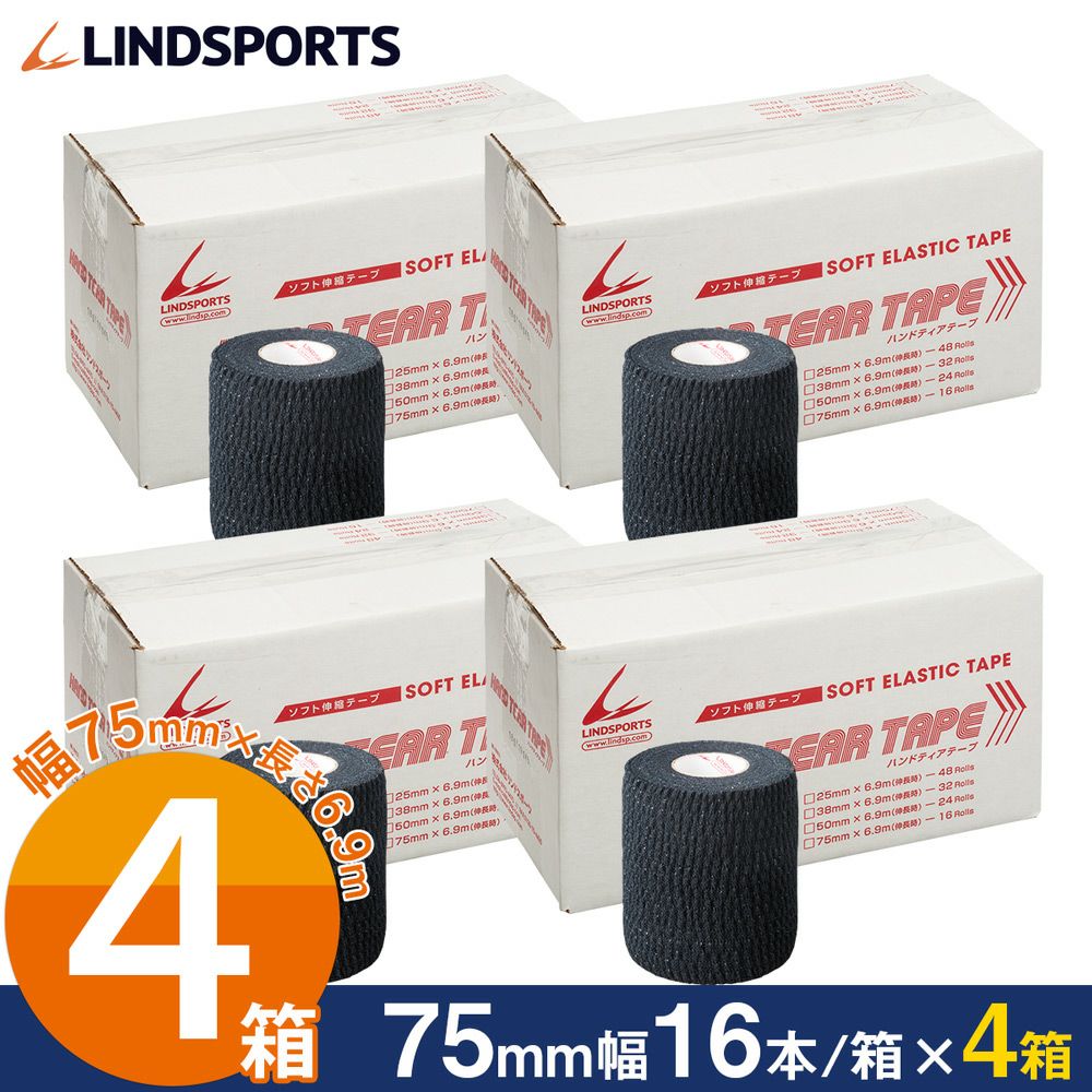 他の画像を見る ラテックスフリーソフト伸縮テープ LINDSPORTS 【お得な4箱セット】 ハンドティアテープAタイプ 75mm×6.9m 16本/箱 カラー:黒 販売価格 ¥ 39,900 税込 カートに入れる (0)